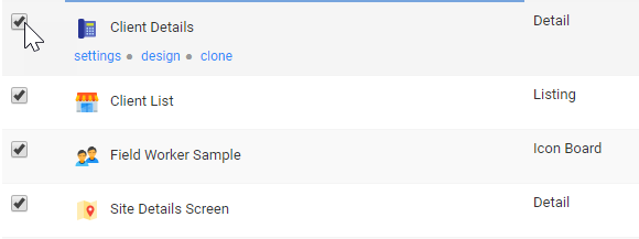 1. In the Screens page (App -> Screens), use the tick box found on the left of each row to select the Screens that you want to move to a folder.